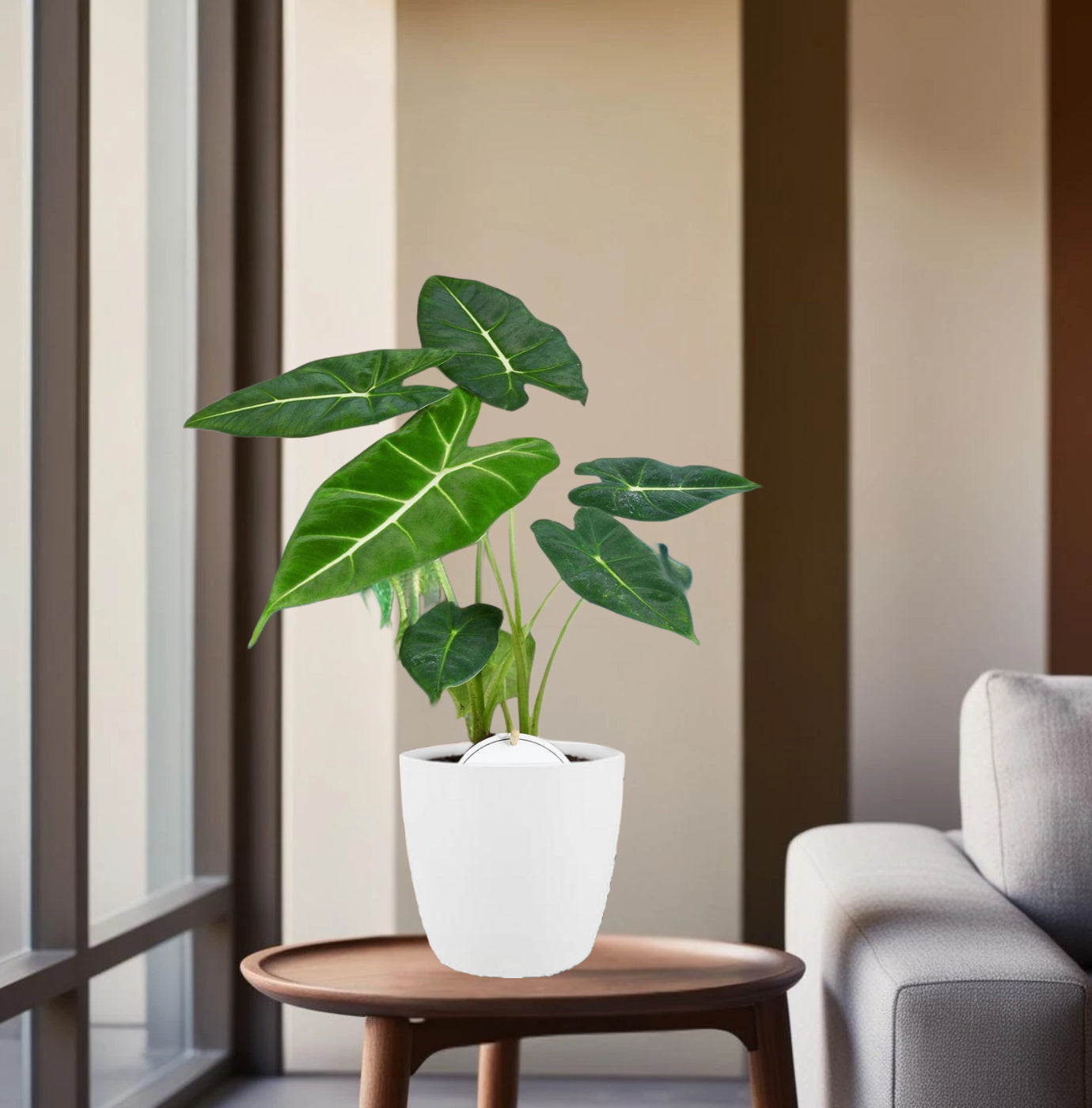 Alocasia Frydek - Ø12cm - ↕35cm + Pot Brussels Wit