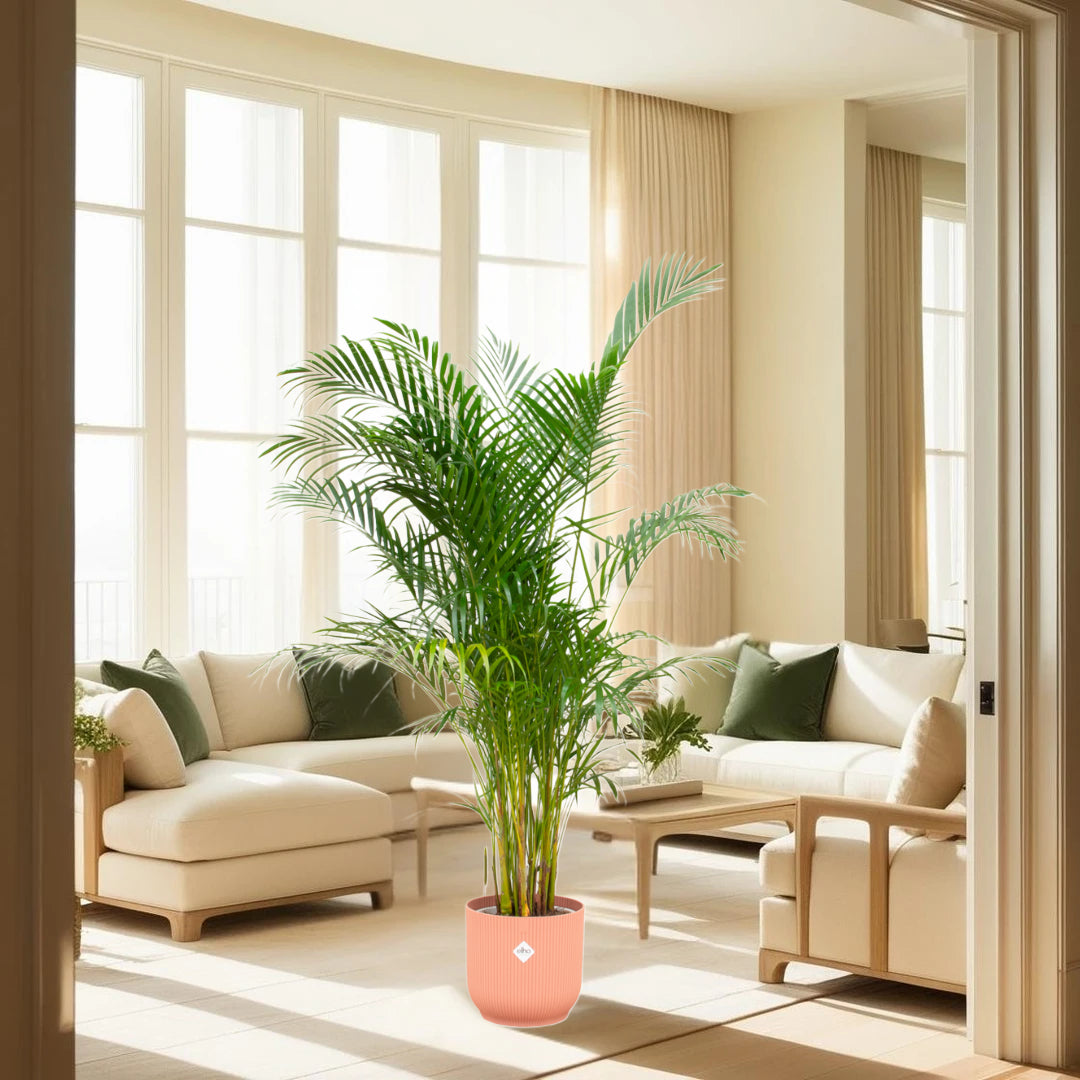 Areca palm inclusief elho Vibes Fold Round roze Ø30 - 160 cm