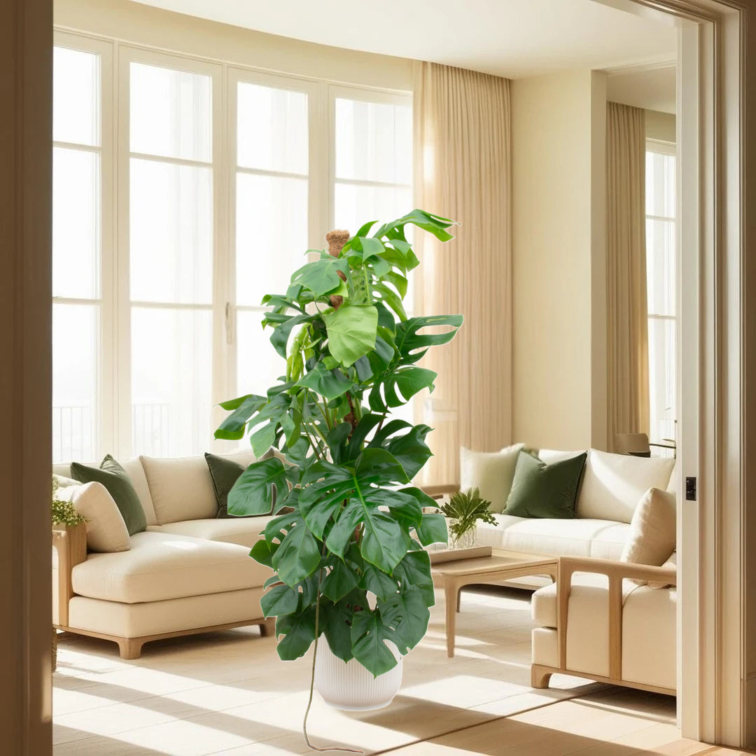 Monstera Pertusum XL inclusief elho Vibes Fold Round wit Ø30 - 150 cm