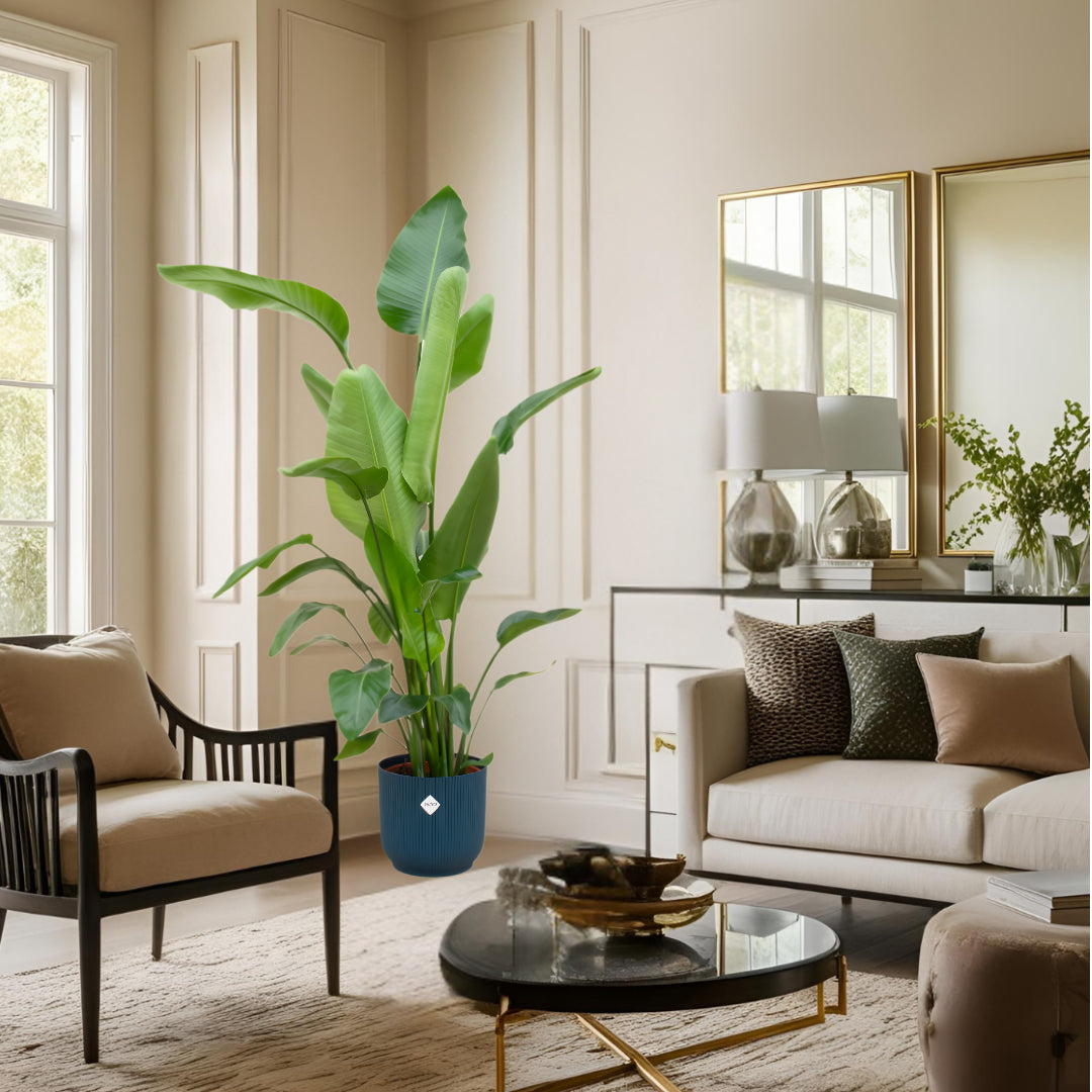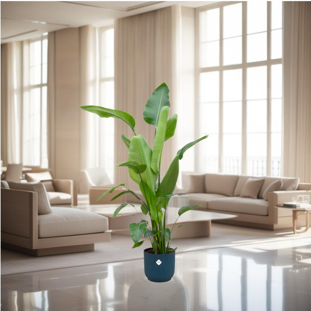Combi deal - Strelitzia Nicolai inclusief elho Vibes Fold Round blauw Ø30 - 160 cm