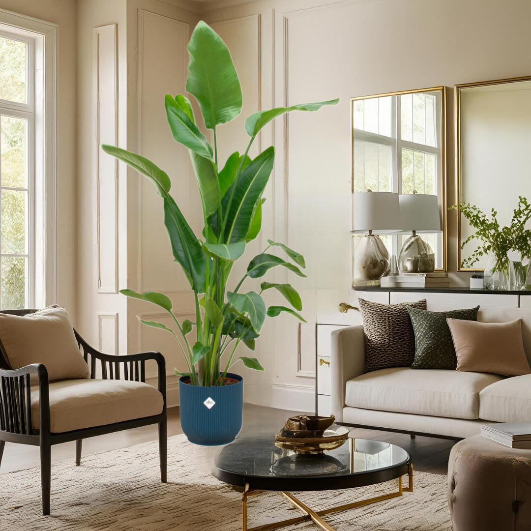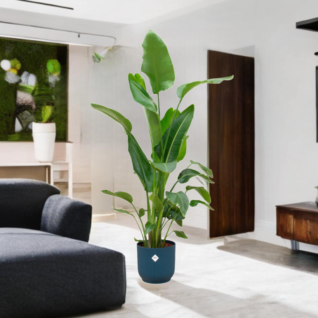 Strelitzia Nicolai inclusief elho Vibes Fold Round blauw Ø30 - 180 cm