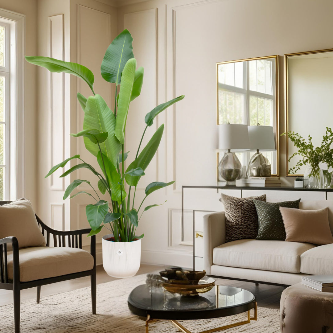 Combi deal - Strelitzia Nicolai inclusief elho Vibes Fold Round wit Ø30 - 180 cm