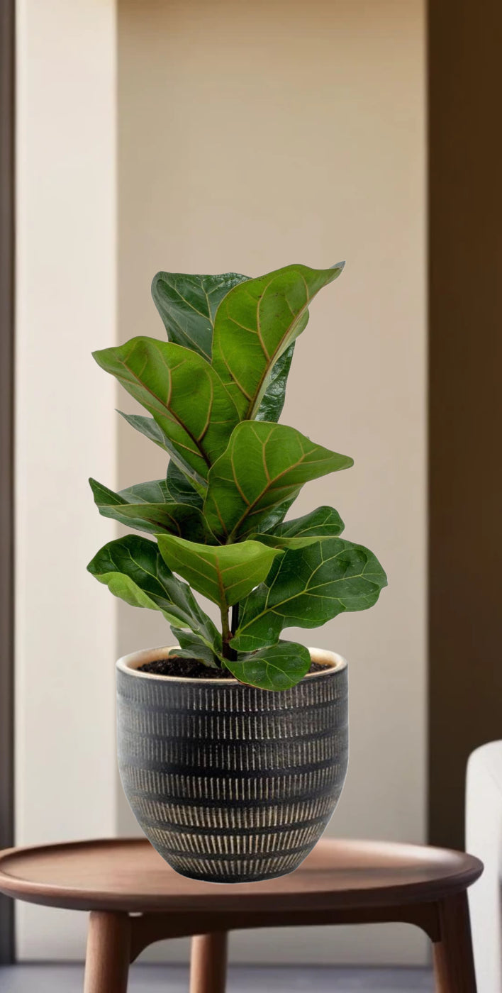 Ficus Lyrata - Ø12cm - ↕30cm + Beau Pot Zwart