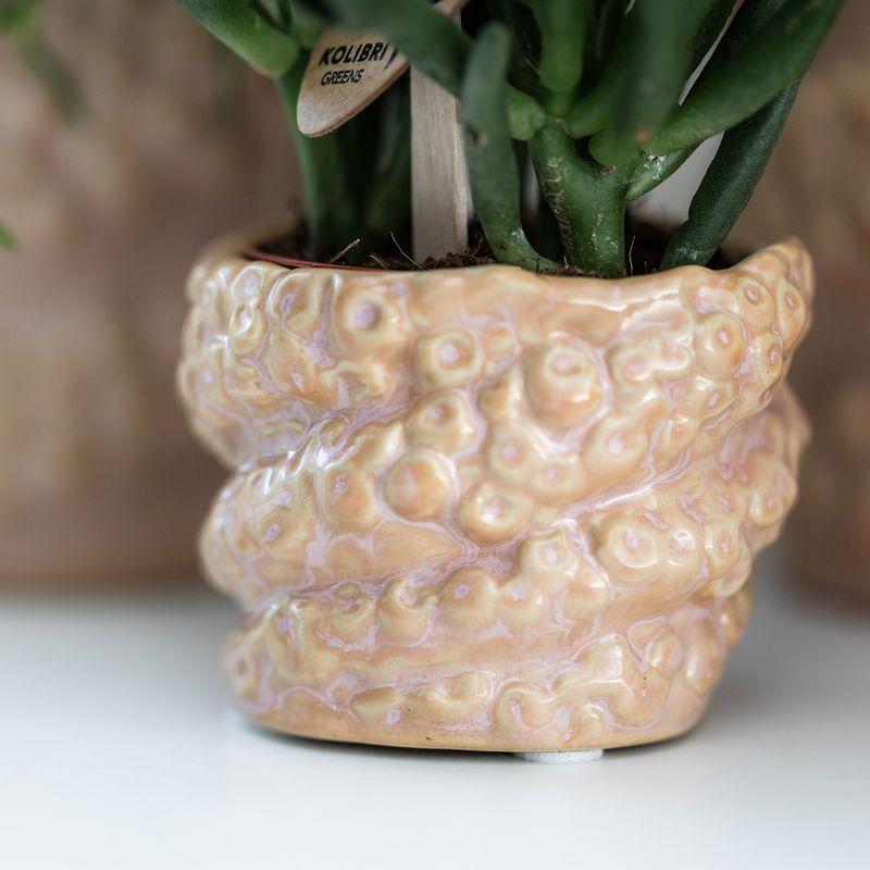 In de 9 cm Octopus pot vind je de 'Treviso' orchidee, met bloemen in een licht oudroze kleur die mooi samenkomt met de pot. Daarnaast zit er een compacte vetplant in een 6 cm Octopus pot bij, een leuke toevoeging aan de set.