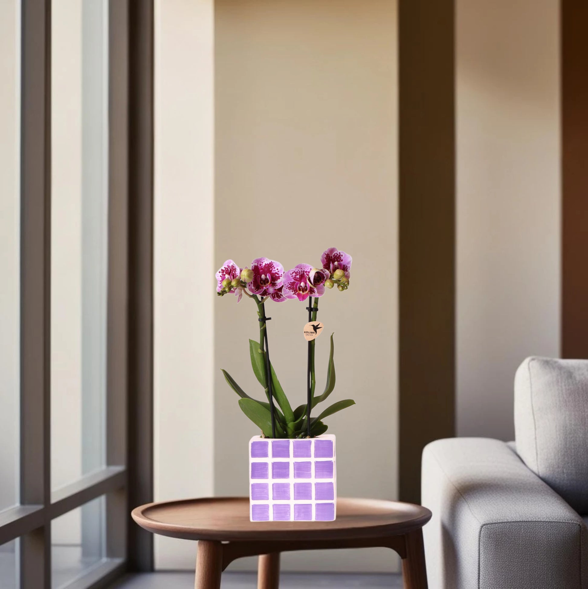 Paarse phalaenopsis orchidee El Salvador + Mosa sierpot lila - potmaat Ø9cm