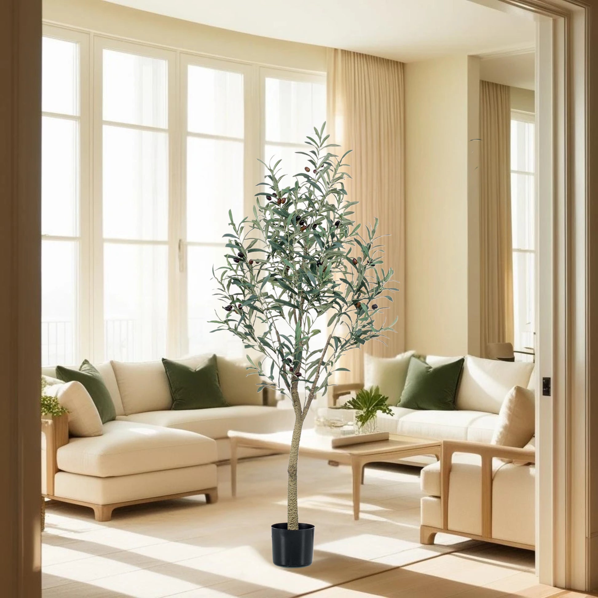 Onze kunst Olijfboom (officiële naam: Olea Europaea) hoef je niet te snoeien. Die houdt altijd zijn mooie vorm. En zijn vruchten. De vele kleine zilvergroene blaadjes brengen je in gedachten naar Zuid Europa. Deze leuke kunstboom komt op veel plekken tot zijn recht. Bijvoorbeeld als je een grote hal hebt of een serre. Maar natuurlijk ook in de woonkeuken of op kantoor. Niet proberen de olijven te oogsten hè? Wij verkopen de kunstolijf in vier verschillende maten, van groot tot extra groot.