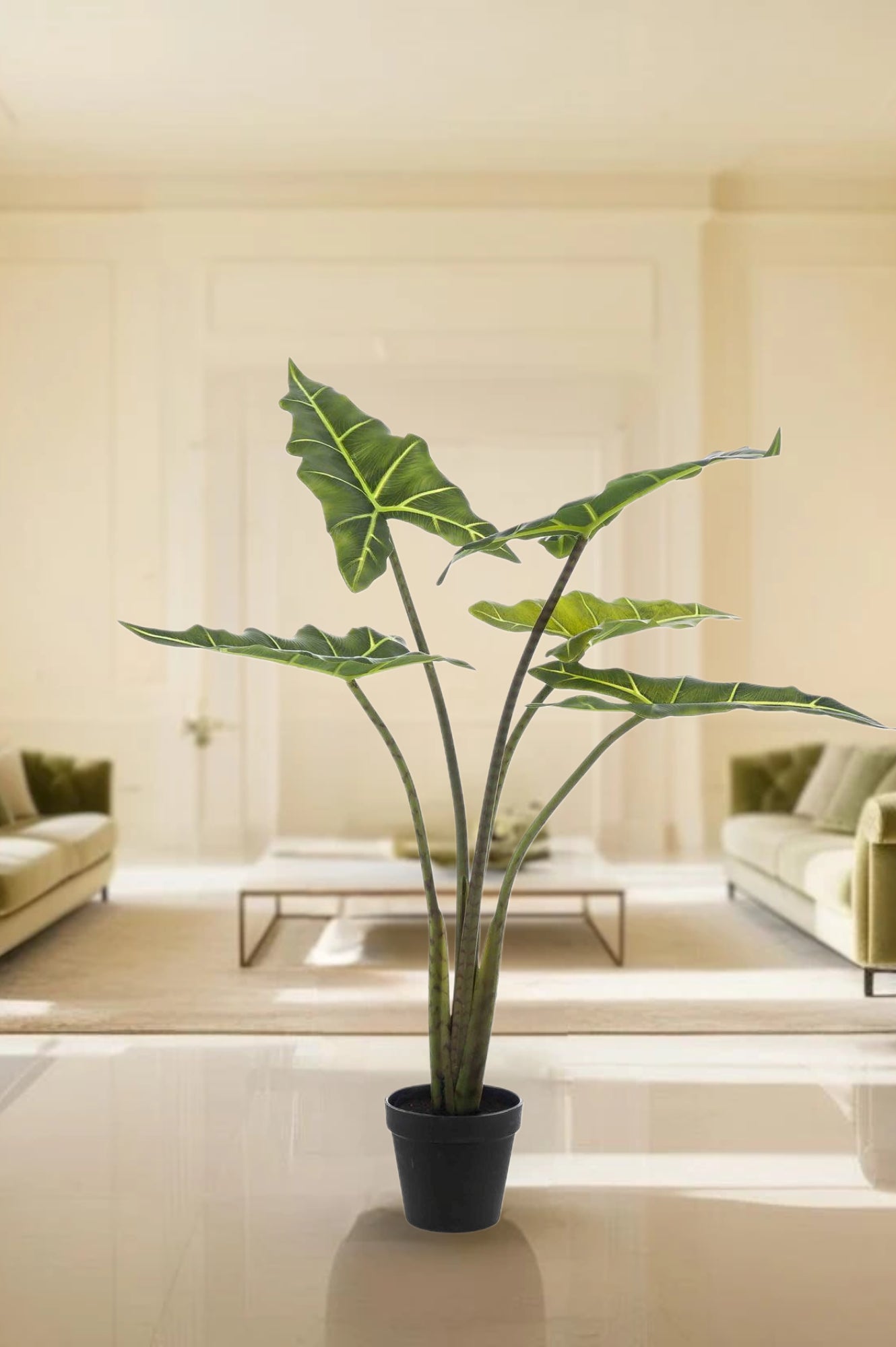 Een echte Alocasia Frydek moet je heel goed verzorgen, hij houdt van een bepaalde vochtigheid anders worden de bladeren geel. Dat probleem heb je niet met deze prachtige kunst alocasia. Hiervan blijven de bladeren altijd schitterend groen met een mooie witte nerf. In het wild kan de Alocasia Frydek enorme bladeren krijgen van soms wel een meter groot. Vandaar de Nederlandse naam, Olifantsoor. De Olifantsoor is een plant die je beter niet in huis kunt halen als je een huisdier hebt, hij is namelijk behoorlijk giftig voor honden en katten. Iets waar je met deze mooie kunstplant niet bang voor hoeft te zijn. De alocasia frydek is in verschillende maten verkrijgbaar en ook als hangplant.