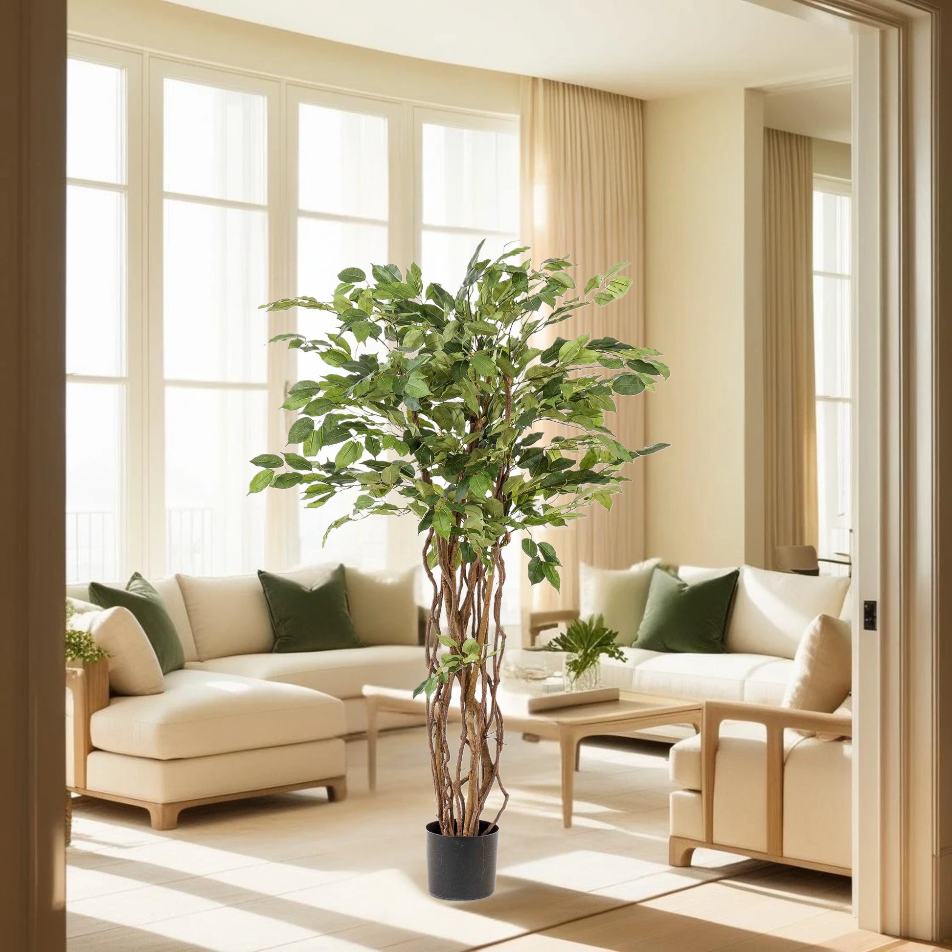 Met de kunstplant Ficus Liana haal je een echte blikvanger in huis. Deze prachtige plant is populair in interieurs en dat is niet zonder reden. De Ficus Liana heeft een elegante uitstraling dankzij mooie houten stam en vele kleine groene bladeren. De plant ziet er heel realistisch uit en verleden in werkelijk ieder interieur.
