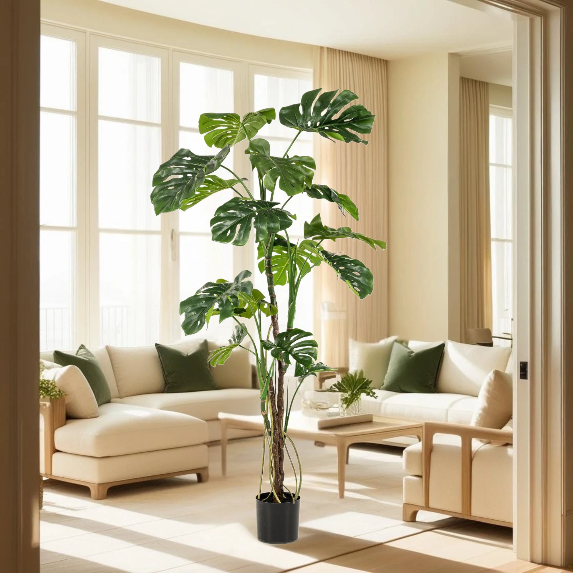 Met onze kunstplant Monstera haal je een trendy kamerplant in huis. Deze populaire gatenplant heeft een moderne uitstraling en gemengd groen en sfeer toe aan je interieur. Dankzij het grote formaat trekt de plant direct de aandacht. Het is een geweldige toevoeging aan verschillende ruimtes, zoals je woonkamer, serre, hal of thuiskantoor.