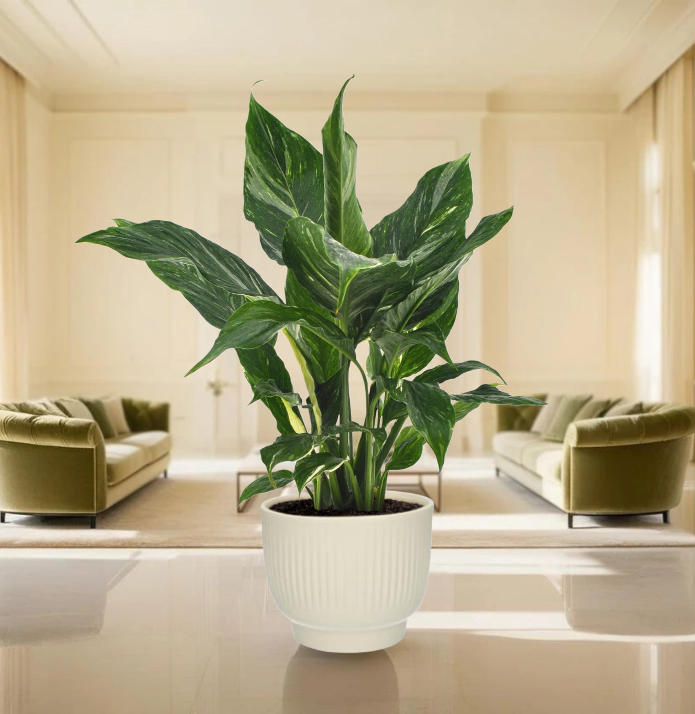 Spathiphyllum Diamond - Ø12cm - ↕40cm + Potenza Rib Pot Wit