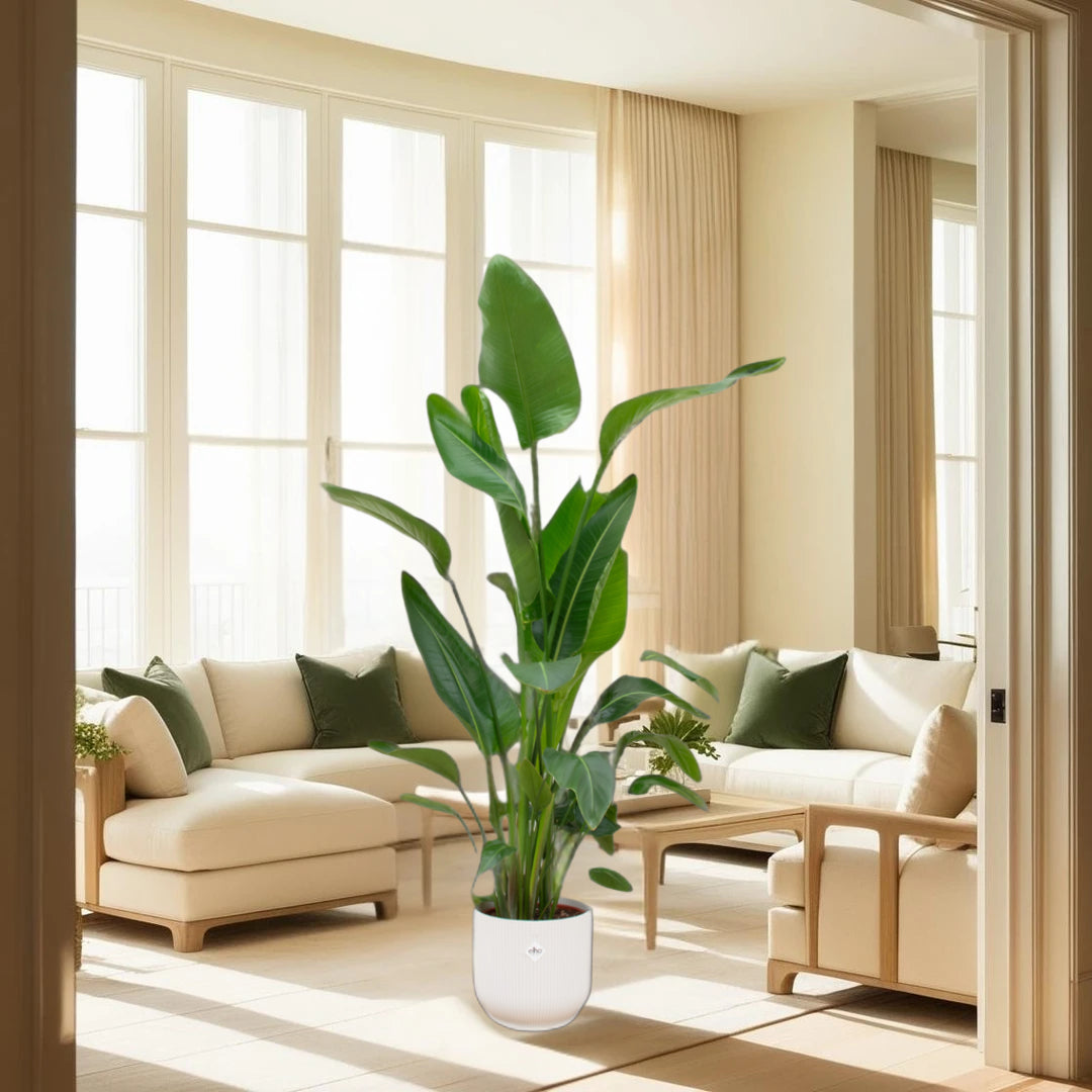 Strelitzia Nicolai inclusief elho Vibes Fold Round wit - 160cm - Ø30