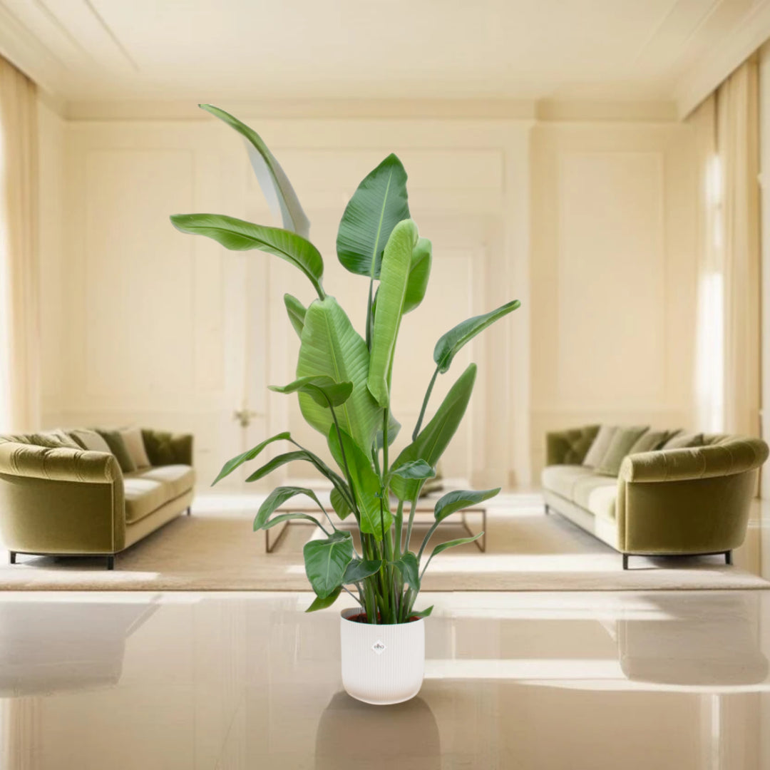 Strelitzia Nicolai inclusief elho Vibes Fold Round wit - 180 cm - Ø30