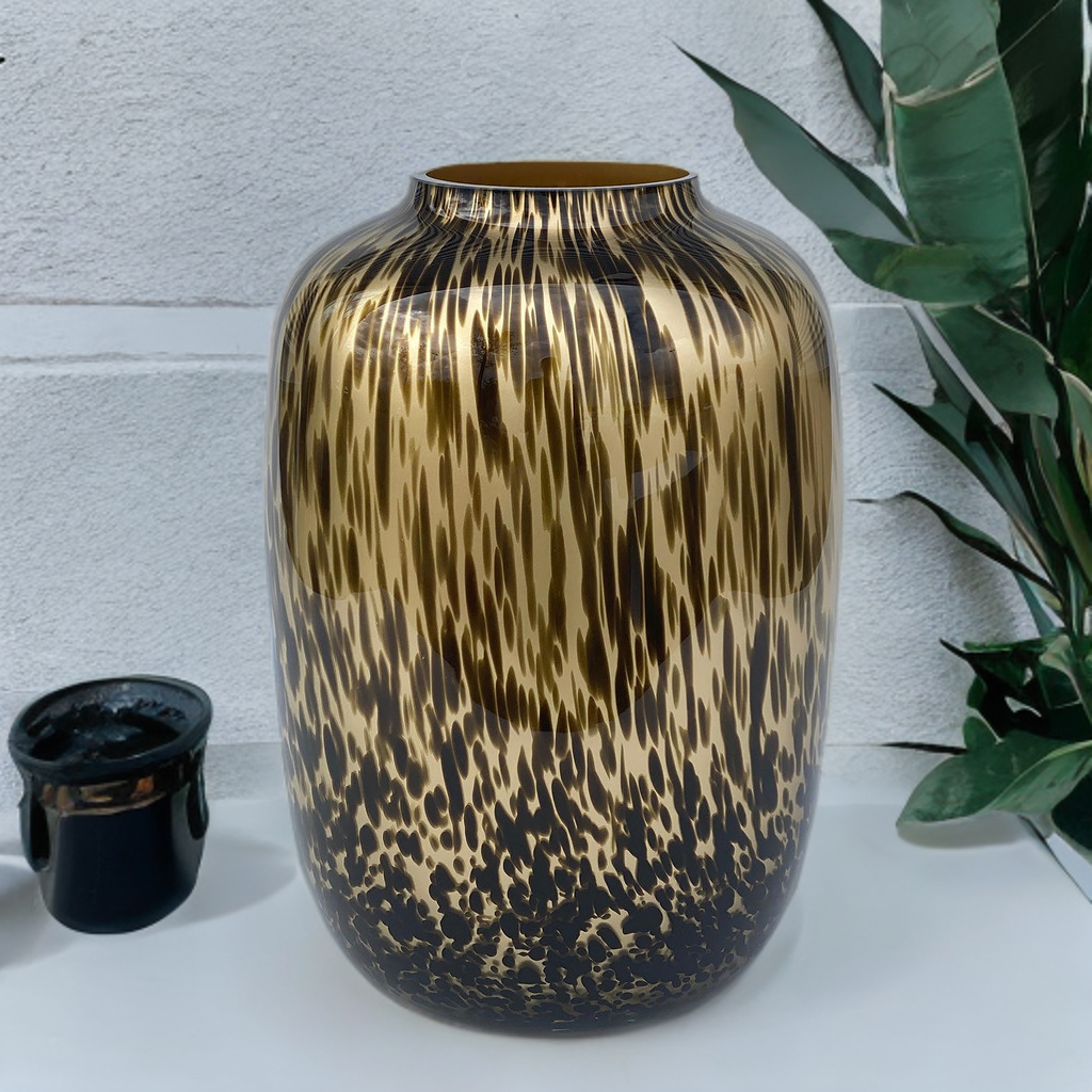 Geef je interieur een uniek tintje met de Artic gold Cheetah! Deze vaas is een echte eyecatcher en heeft een trendy uitstraling dankzij de luipaardprint. Met deze blikvanger in huis maak je keer op keer indruk en zet je je bloemen nog meer in de schijnwerpers. Deze mondgeblazen vaas is gemaakt van hoogwaardig materiaal. Hierdoor geniet je niet alleen van een luxe uitstraling, maar ook van een lange levensduur.